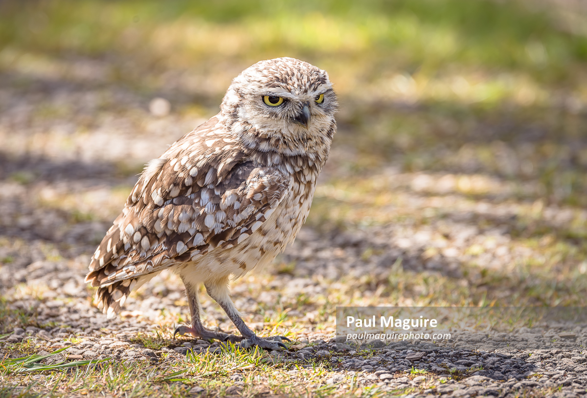 Burrowing owl (Athene cunicularia) standing on the ground, Cumbria, UK: europe,britain,british,british isles,great britain,uk,england,cumbria,lake district,muncaster,muncaster castle,english,united kingdom,european,animal,animal portrait,bird,owl,owls,birds,animals,athene cunicularia,burrowing owl,shoco,ground,on ground,stand,standing,stood,1,one,single,adult,adults,habitat,floor,run,running,walk,walking,portrait,bird of prey,alone,background,captivity,close up,close-up,fauna,hunter,in captivity,nature,nobody,nocturnal,outdoors,outside,predator,wildlife,rural,scene,small,cute,raptor,burrowing
