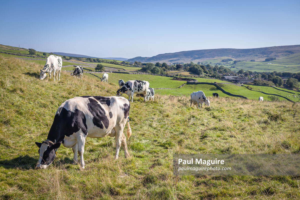 Holstein Friesian cows grazing in a field in the Yorkshire Dales. Grassington, Wharfedale, North Yorkshire, UK: europe,britain,british,british isles,great britain,uk,england,yorkshire,north yorkshire,yorkshire dales,english,united kingdom,european,grassington,wharfedale,cattle,cow,cows,friesian,grazing,holstein friesian,field,farming,landscape,countryside,farm,nobody,rural,agriculture,livestock,scene,country,animal,animals,farmland,agricultural,scenic,outdoors,herd,nature,pasture,fields,meadow,outside,view,scenery,grass,hill,hills,summer,green,rustic,farms,white,black,black and white,eating,graze,land,farm land,outdoor,holstein